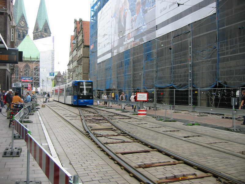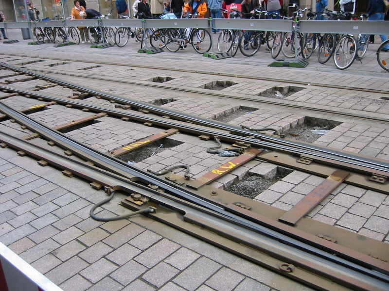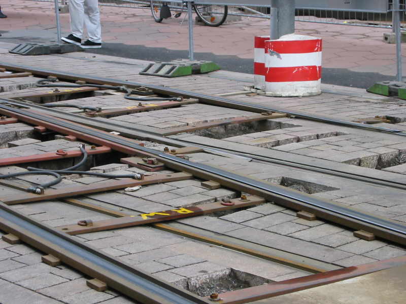 Kletterweichenbetrieb bei der Bremer Straßenbahn AG (BSAG) in der Obernstraße, Bremen. Die Fotos entstanden am 22.6.2002.