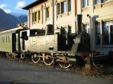 In Tirano kommen wir sogar pünktlich an und haben noch Gelegenheit, die dort ausgestellte Dampflok kurz zu bewundern, bis wir den aus zwei Triebwagen bestehenden Zug nach Poschiavo