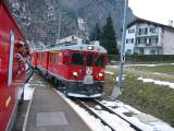 Schließlich kommt unser Zug nach Alp Grüm (und weiter nach St. Moritz), bestehend aus einem ABe 4/4 III und einem ABe 4/4 II; der vordere Triebwagen wird abgekuppelt und ein baugleicher
