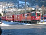 Mit je einem ABe4/4 II und ABe 4/4 III gehts hinunter nach Pontresina. Weil es sich so schlecht rodelt mit großen