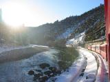 Bei der Rückfahrt erwischen wir in der Rheinschlucht noch die letzten Sonnenstrahlen, was schöne Gegenlichtfotos aus dem Zug gibt.
