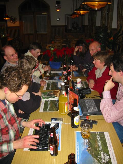 (siehe großes Bild). Im Bild die Teilnehmer (von vorn links aus) Tobias Köhler (am Reisebericht arbeitend), Matthias Dingeldein, Rainer Burre, Hans-Jürgen Ramoschat, Martin Bienwald, Patrick Greinecker,